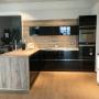 Moderne L-Küche | Grifflos und mit integriertem Bartresen
